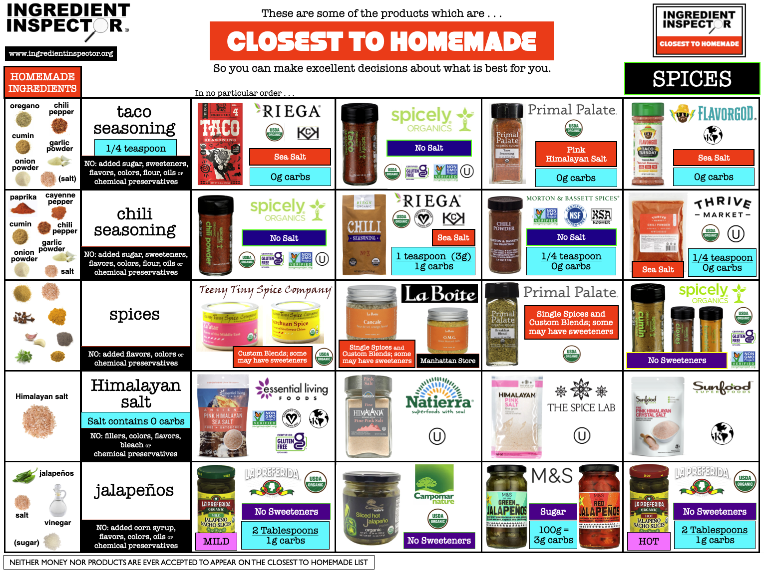 Ingredient Inspector certifies products in over 300 food and beverage categories whose ingredients are closest to those we would use at home if we were making this item from scratch in our kitchens as Closest To Homemade.