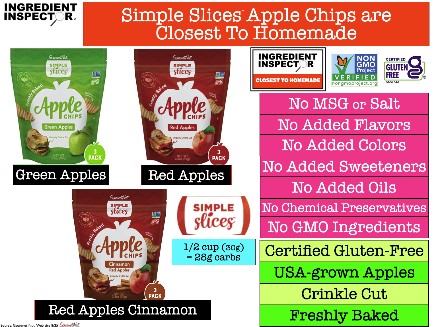 Here are some delicious Apple Chips which are Closest To Homemade >> they are made with only Apples and possibly Cinnamon: