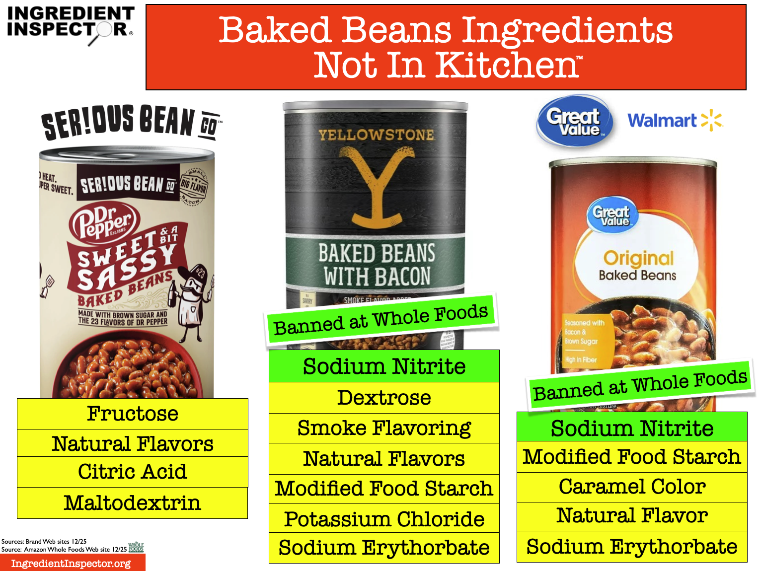 Following are a couple of slides showing commercial ingredients Not In Kitchen in several brands of Baked Beans: