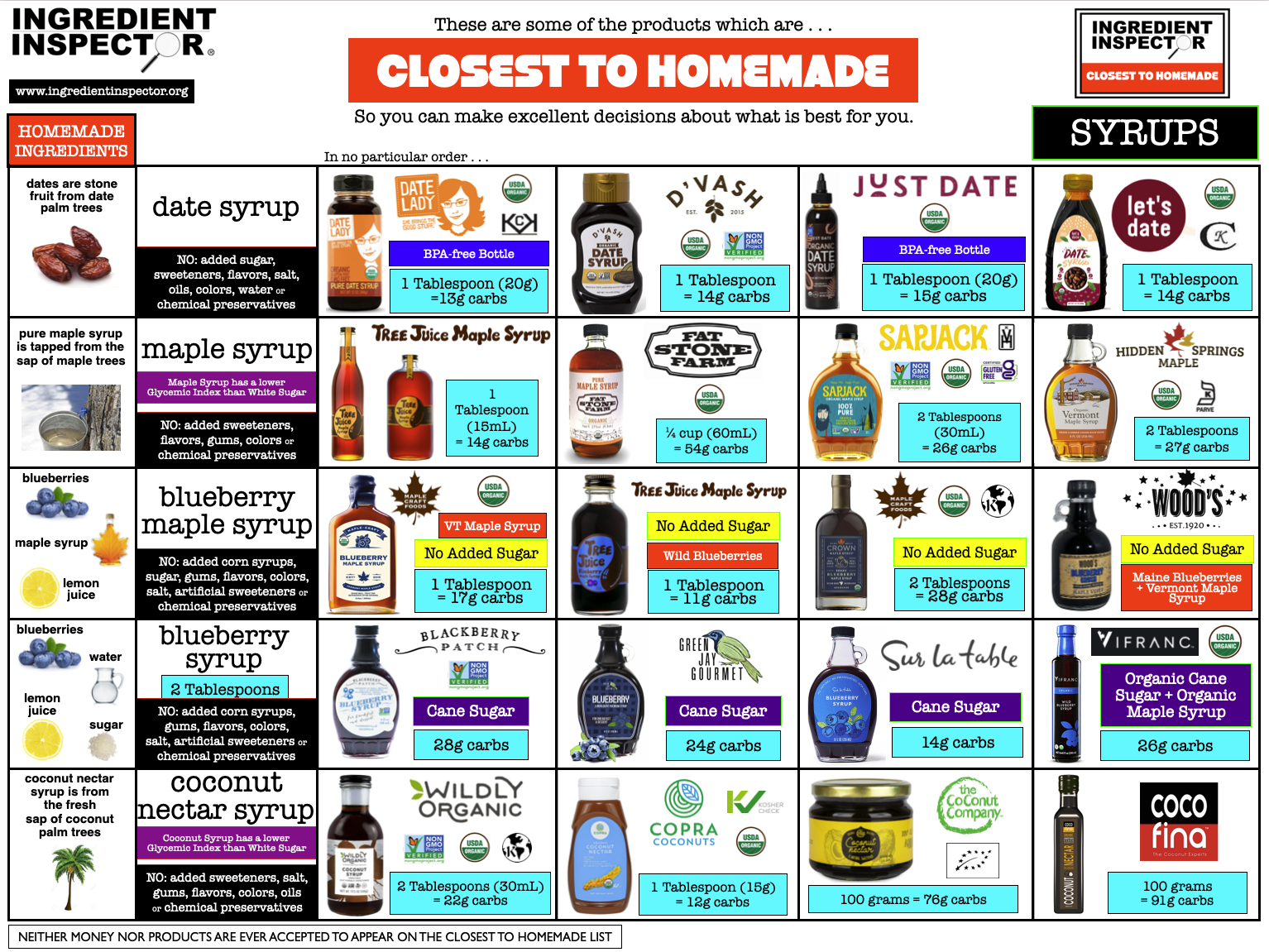 Here’s a handy summary chart of Closest To Homemade Syrups: