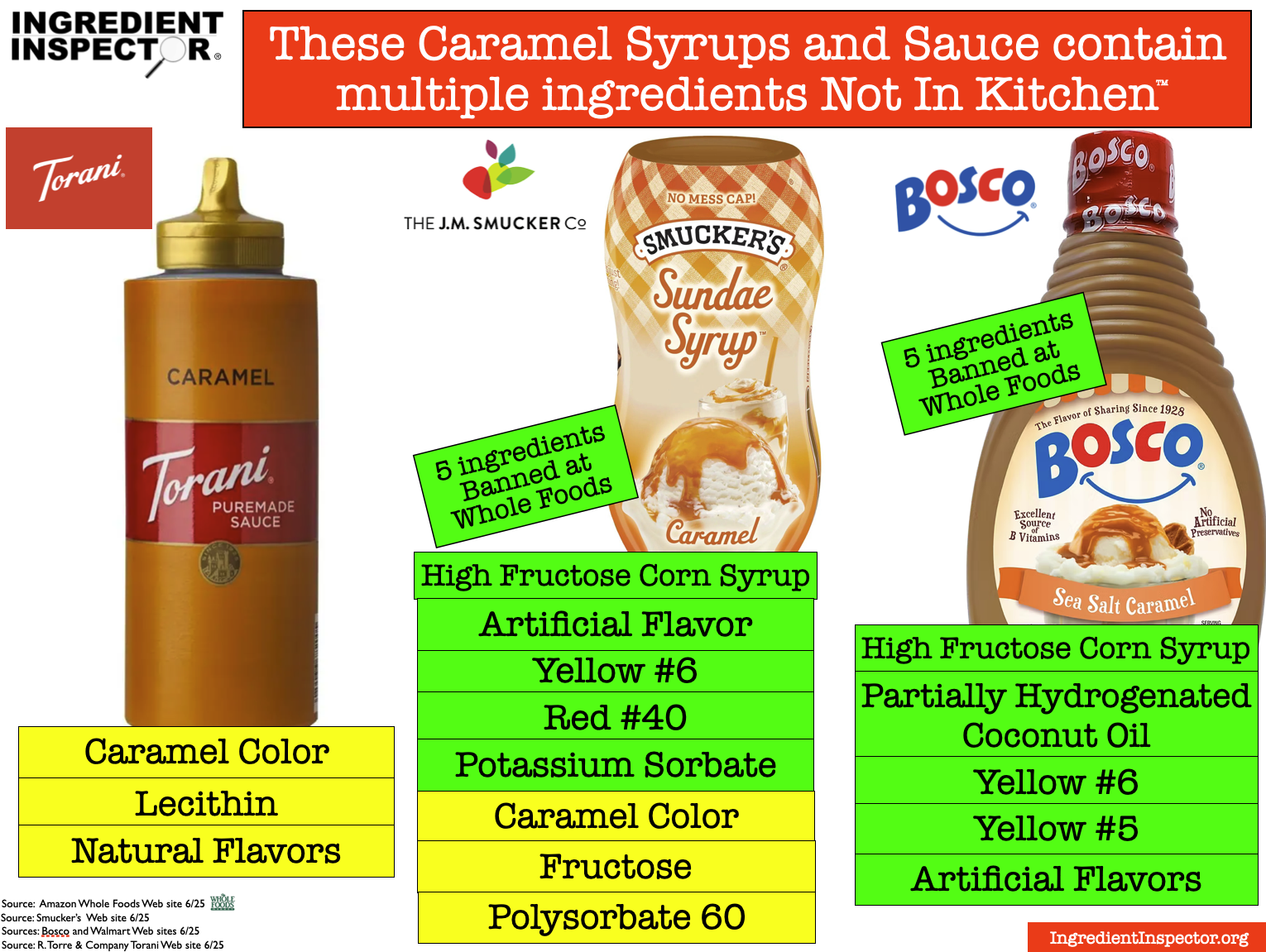 Many Caramel Sauces and Syrups contain ingredients Not In Kitchen >> ingredients we would never use to make Caramel Sauce or Syrup at home.