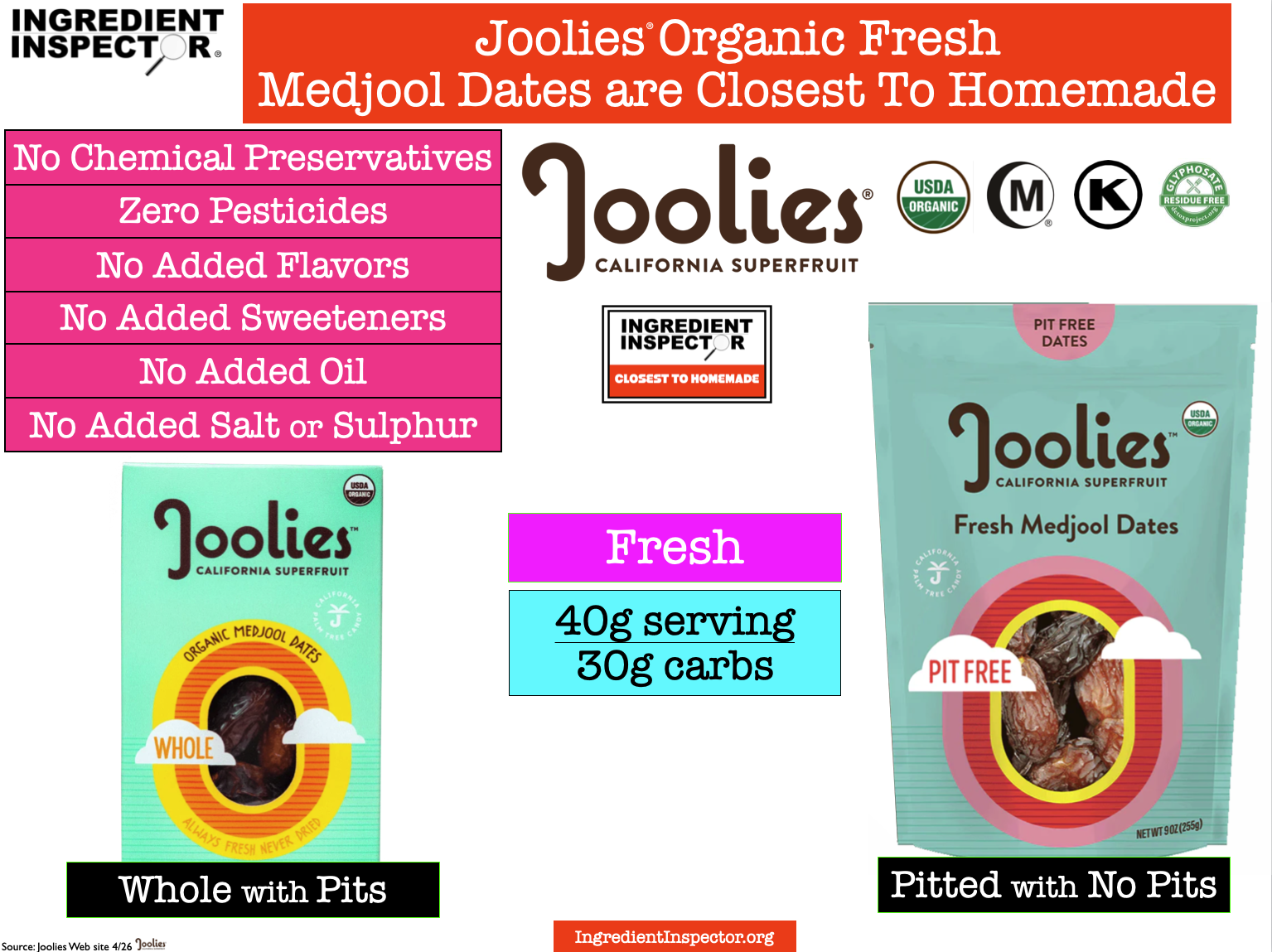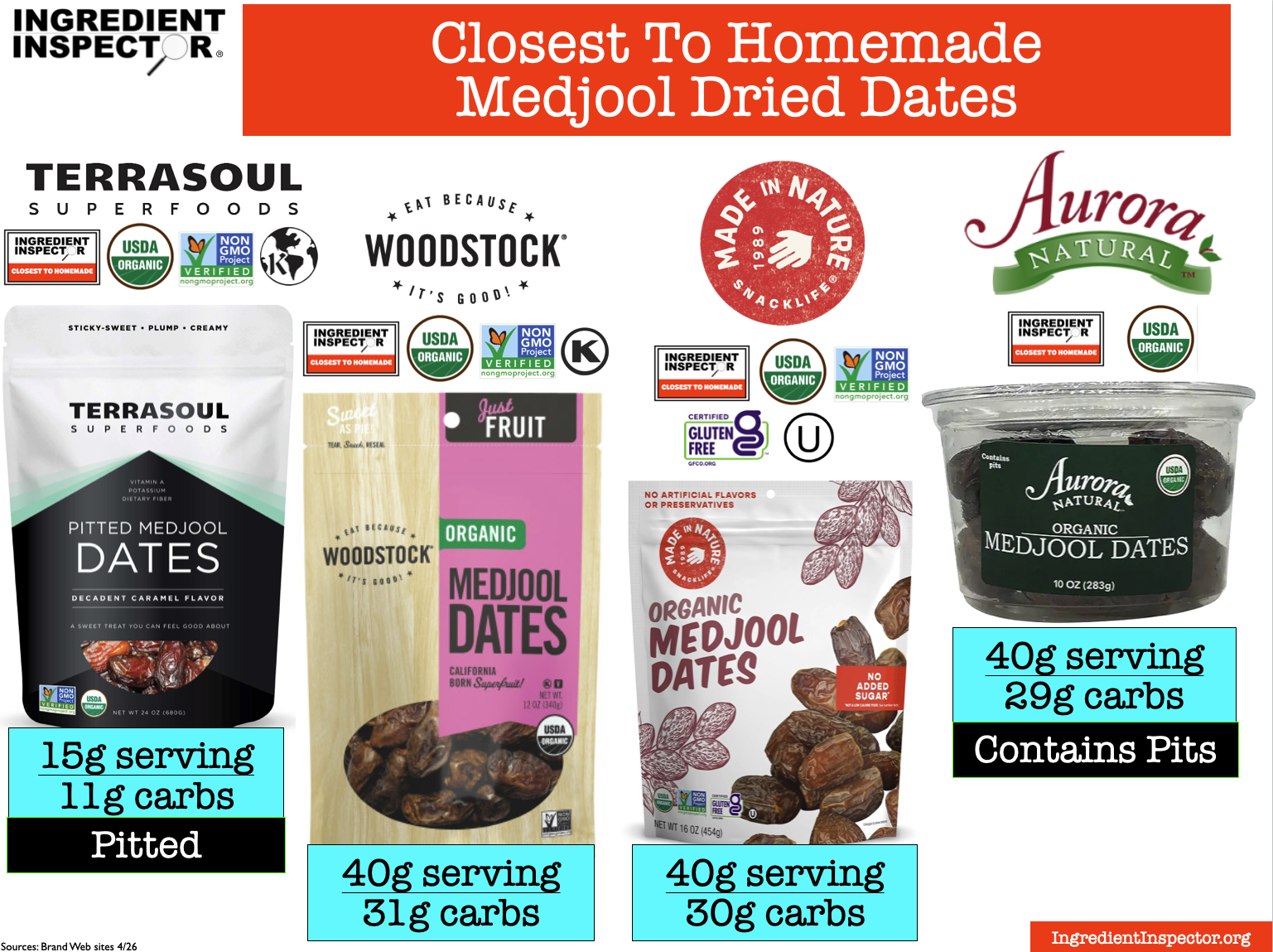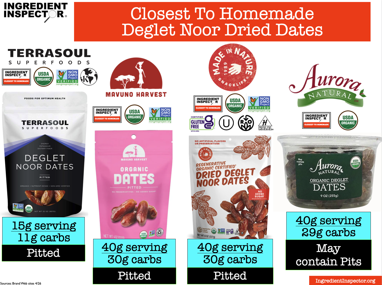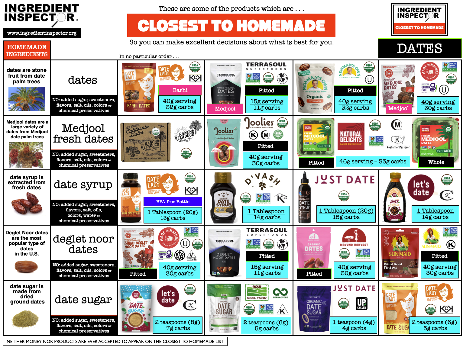 Here’s a handy summary chart for Dates including Date Syrup and Date Sugar . . .