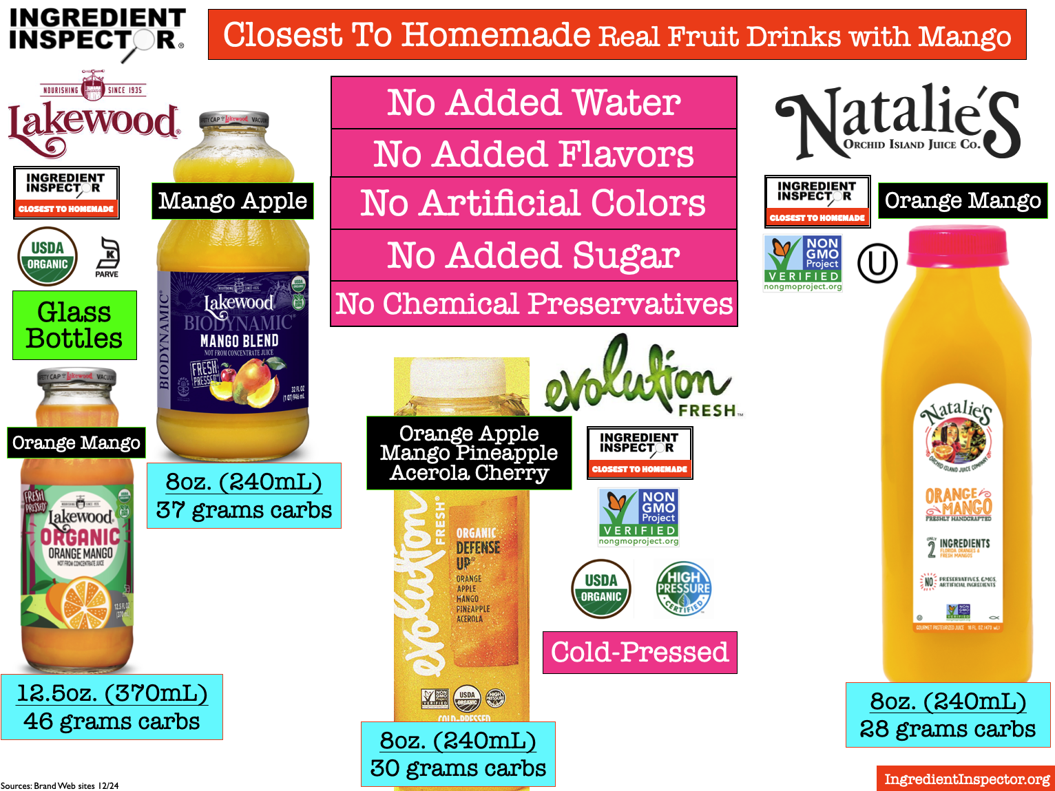 CLOSEST TO HOMEMADE: Following are a few Real Fruit Drinks with Mango which contain no added Water, Flavors, Colors, Sugar or Chemical Preservatives.