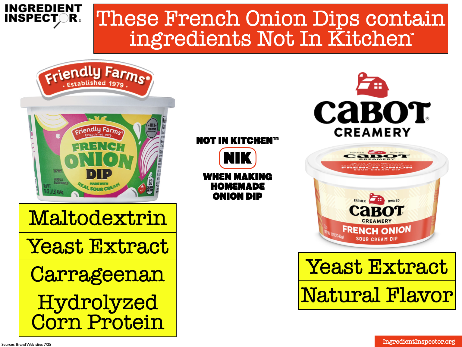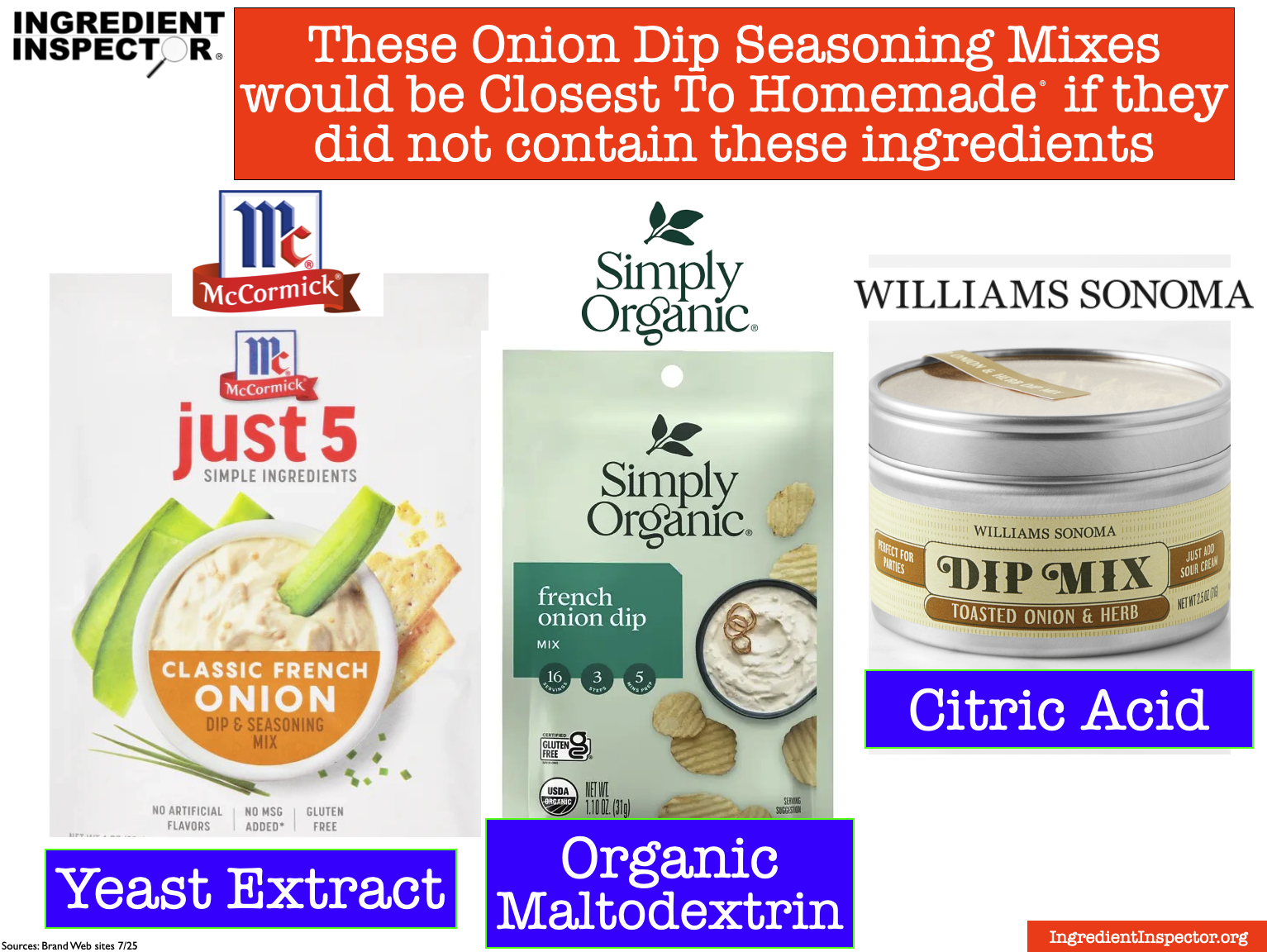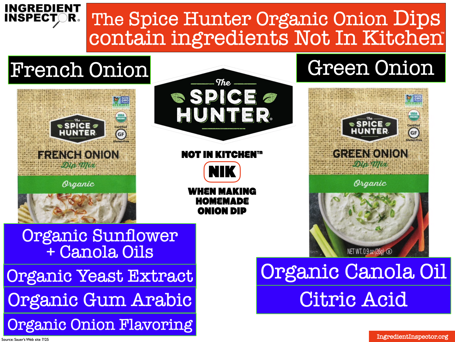 Following are snapshots of the Not In Kitchen ingredients in several Onion Dip Mixes: