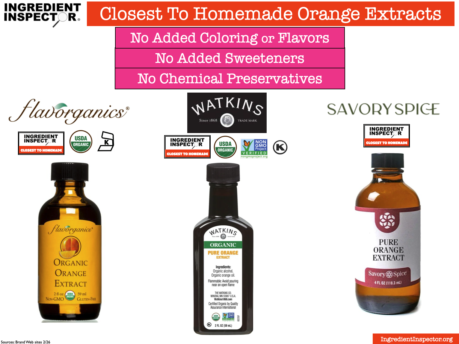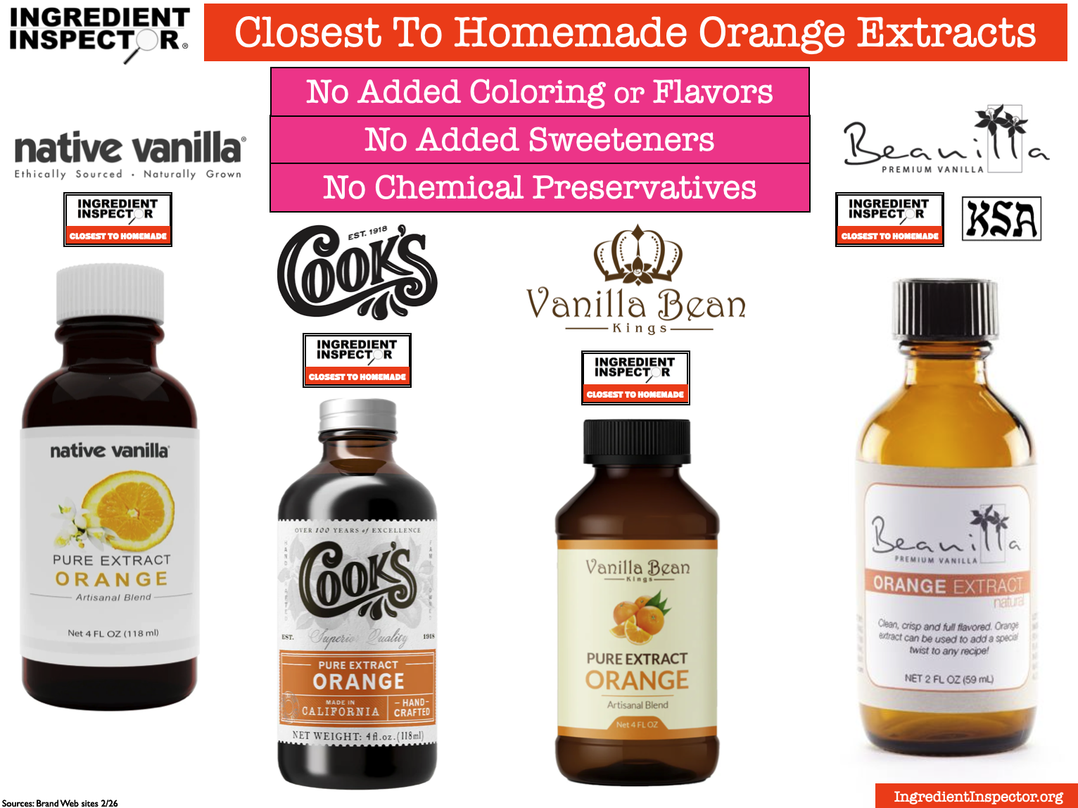 CLOSEST TO HOMEMADE: Following are several Orange Extracts which are Closest To Homemade with no added colors, flavors, sweeteners or chemical preservatives: