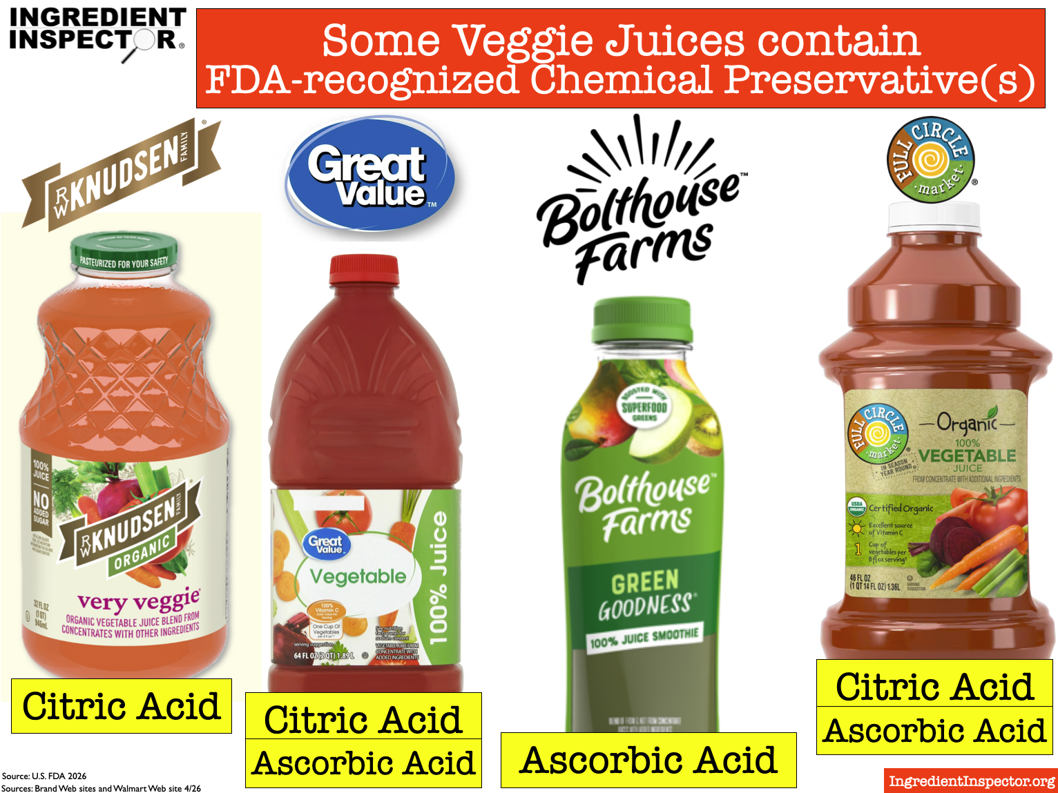 In addition to V8, some other Veggie Juices contain FDA-recognized Chemical Preservative(s):