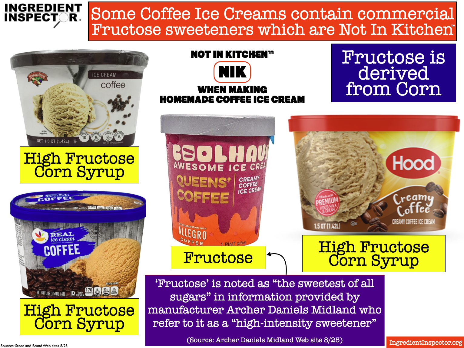 FRUCTOSE: Some Coffee Ice Creams contain commercial Fructose sweeteners which are Not In Kitchen.