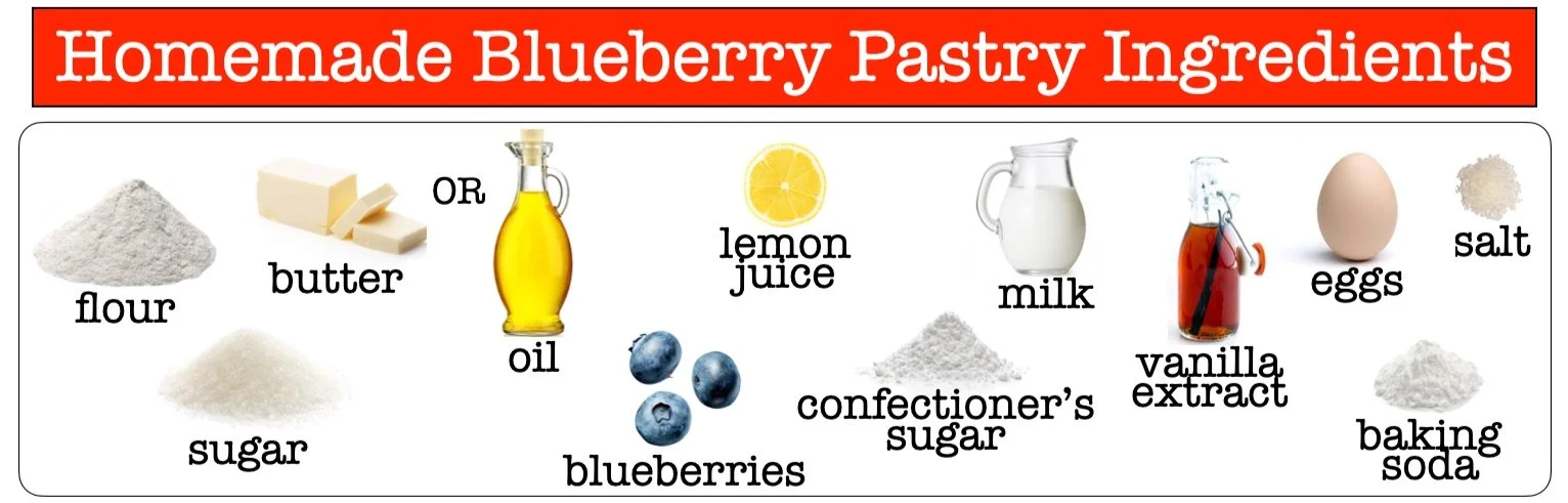 HOMEMADE TOASTER PASTRIES: This is an unusual category for Closest To Homemade because Toaster Pastries aren’t typically made at home. We probably wouldn’t make something designed to fit in the toaster. We would be more likely to make a baked strudel or fruit pastry. It might look something like this in terms of ingredients: