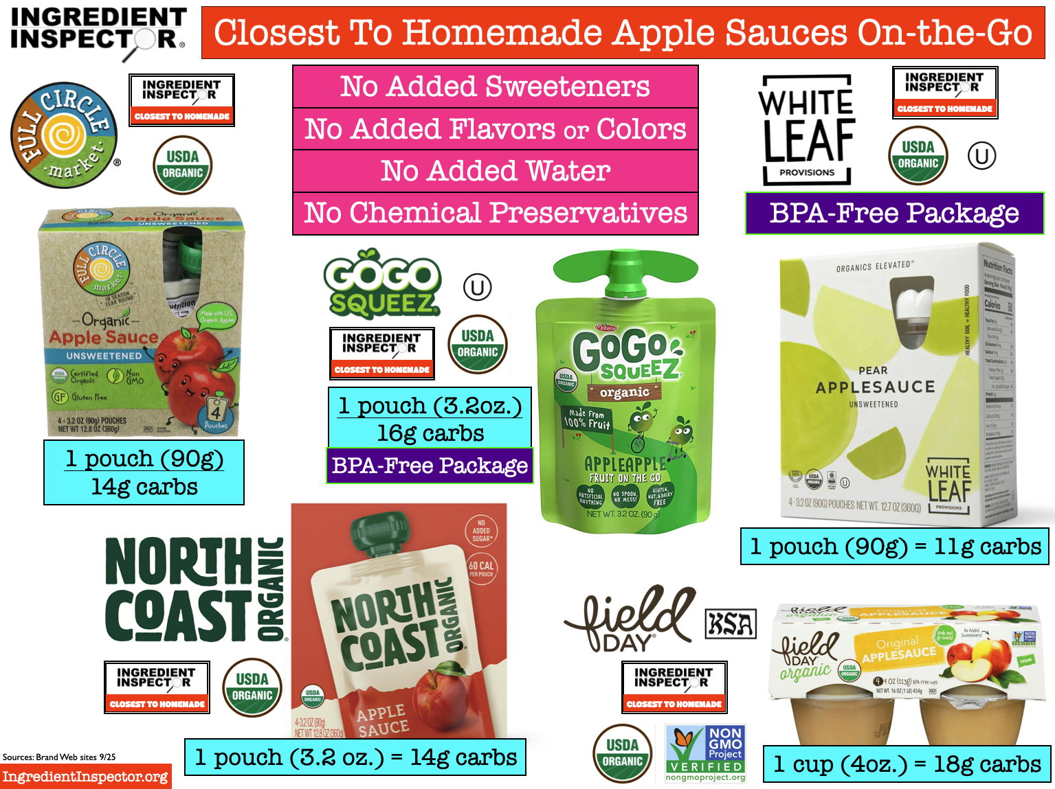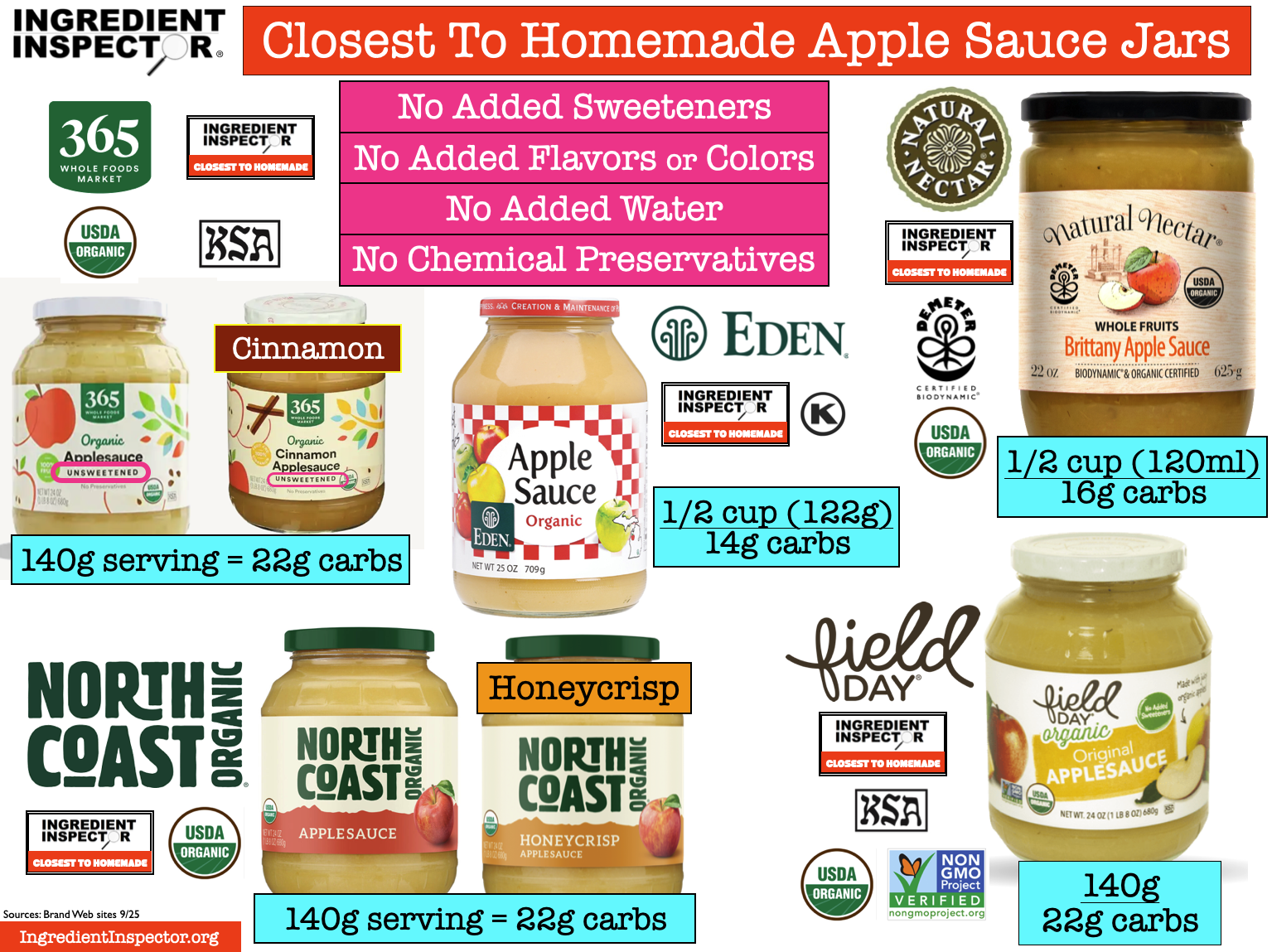 CLOSEST TO HOMEMADE: Following are several Apple Sauces which are Closest To Homemade with no added Sweeteners, Flavors, Colors, Water or Chemical Preservatives: