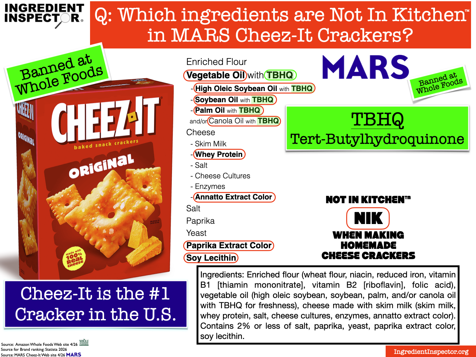 Extra Cheesy Cheez-It Crackers also contain Yeast Extract, Lactic Acid and Citric Acid which is an FDA-recognized Chemical Preservative. (Source: U.S. FDA 2026)