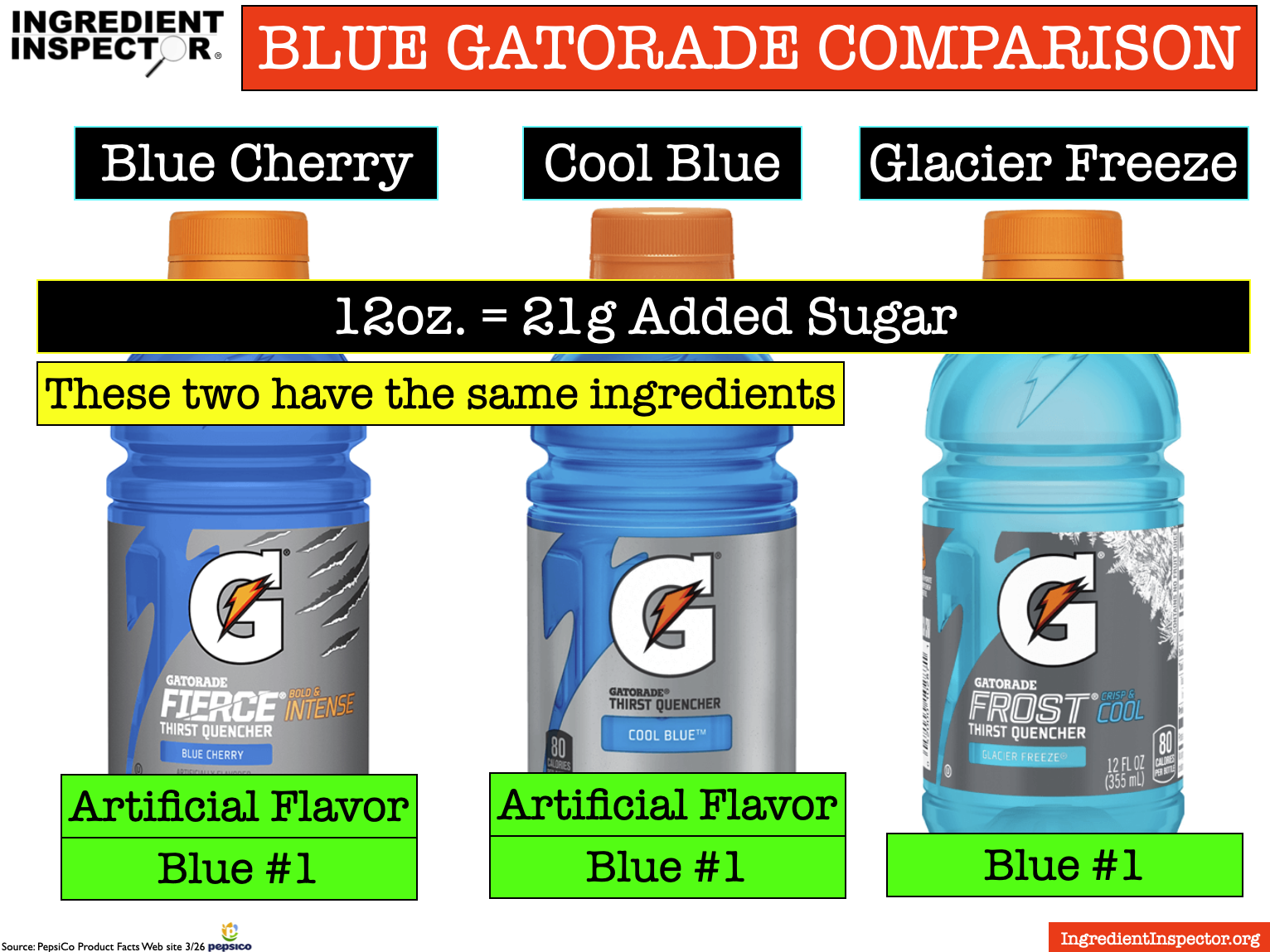 See what’s in a couple of other Gatorade flavors: