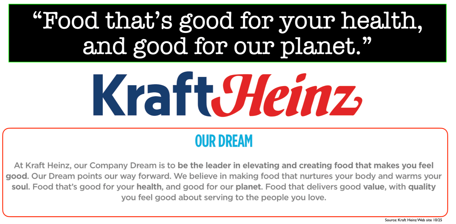 HEINZ KETCHUP: Today, Heinz Ketchup is the #1 selling ketchup in the U.S. (Source: Statista 2025) Kraft Heinz states, “Our Dream” which includes making “Food that’s good for your health, and good for our planet”.