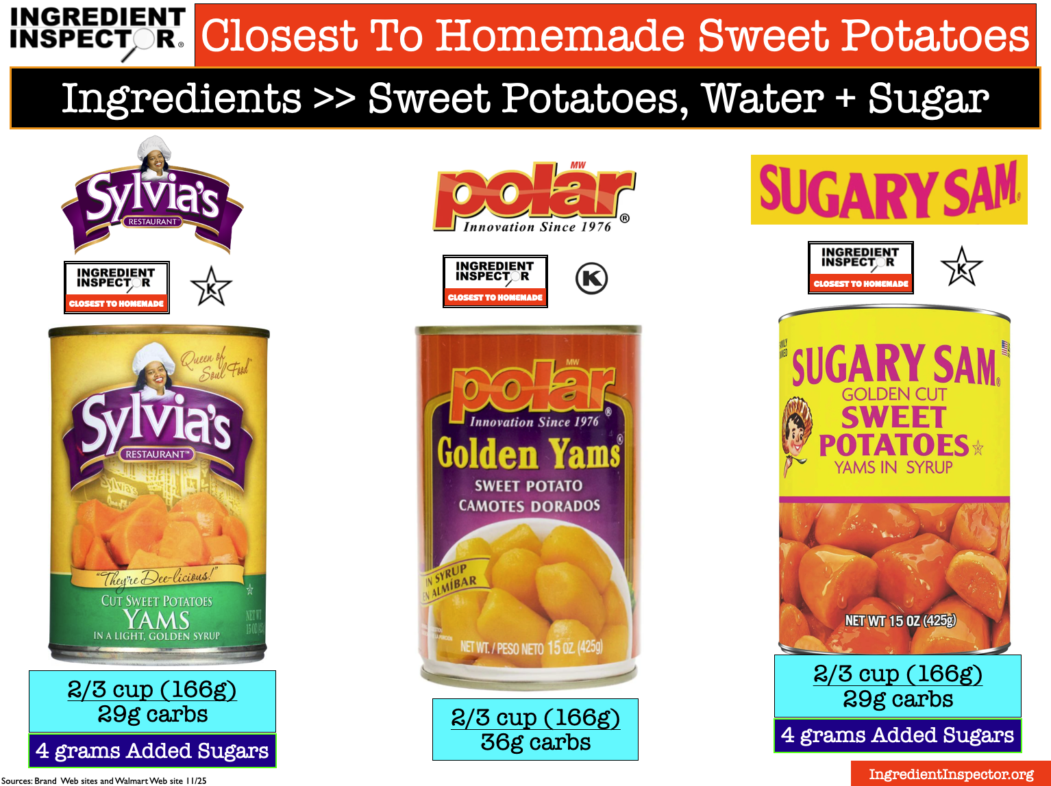 CLOSEST TO HOMEMADE: Following are several brands of canned Sweet Potatoes whose ingredients are Closest To Homemade: