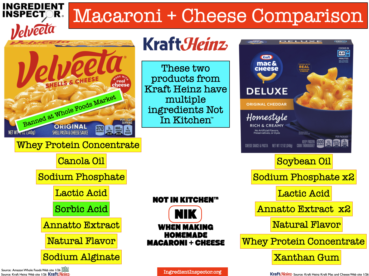 Following is a snapshot of the ingredients in Velveeta Shells & Cheese >> there are multiple ingredients we would never use at home to make Macaroni + Cheese: