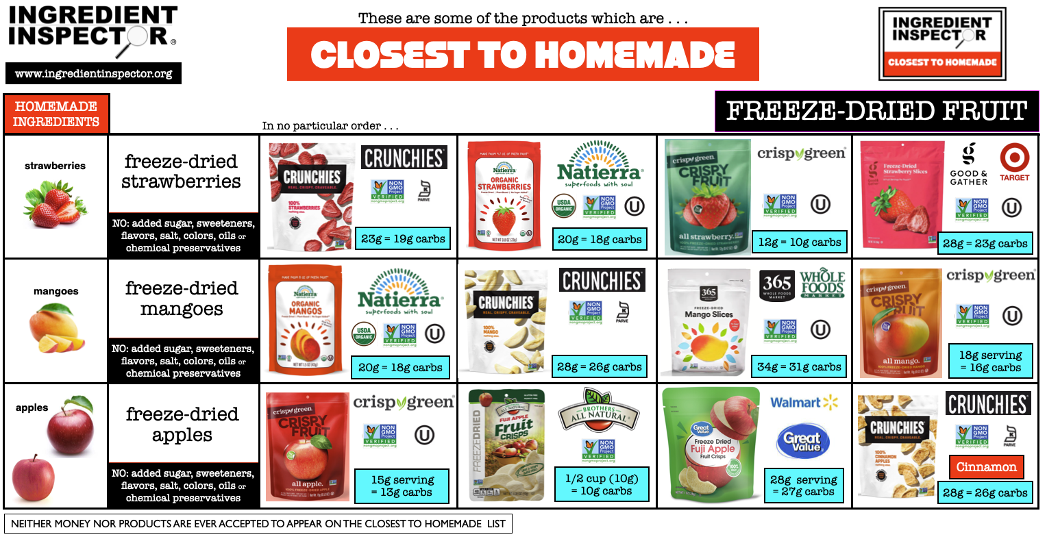 Here are some crunchy Freeze-Dried Fruits and Dried Fruits which are Closest To Homemade made with only the fruit itself: